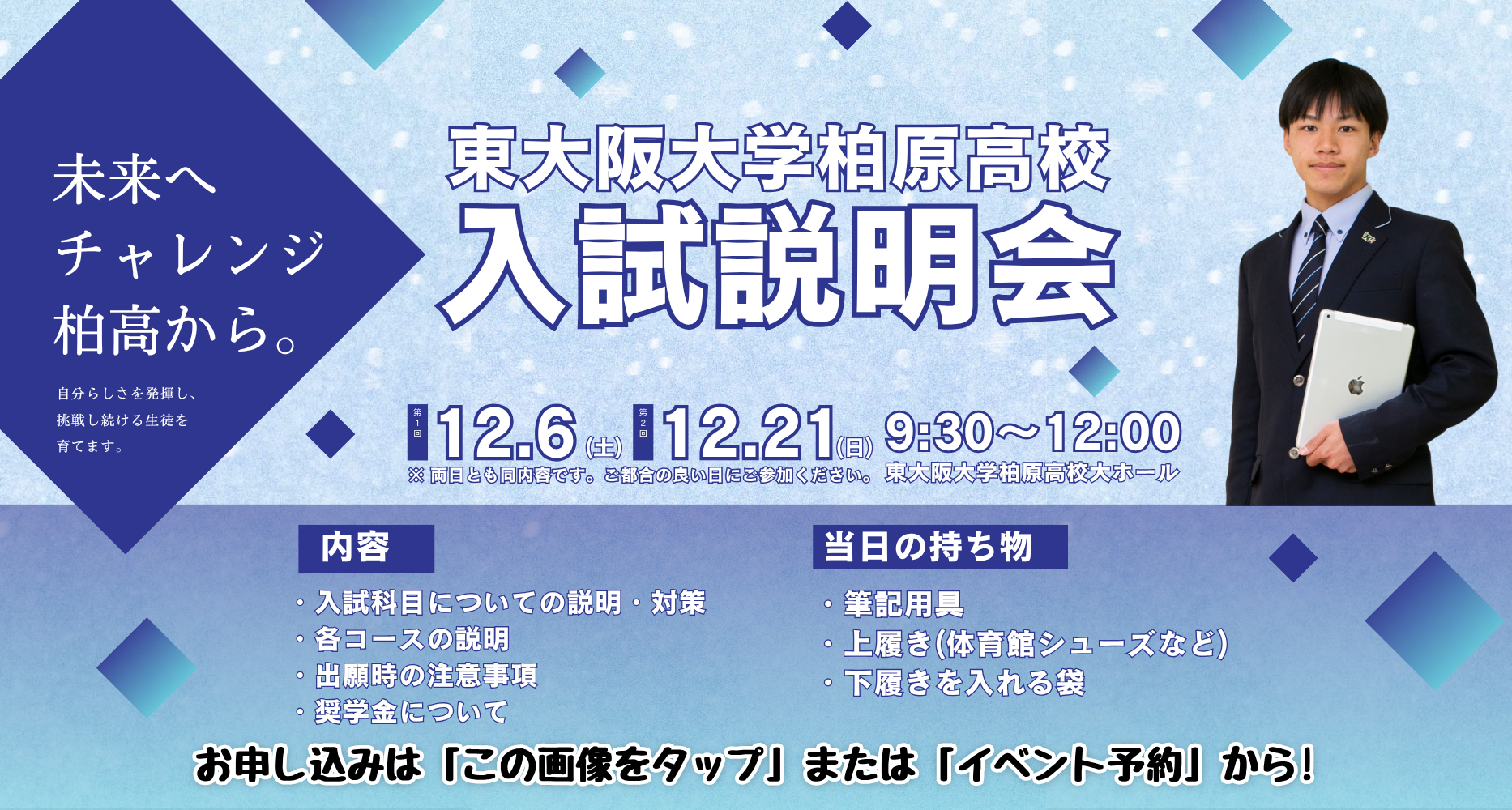 12月6日(土)入試説明会の申込みが始まりました。(事前申込制) お申込みは下部「お申込みフォーム」よりお願いいたします。
