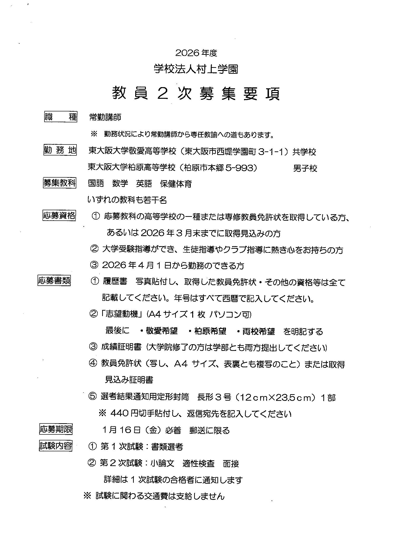 教員募集情報